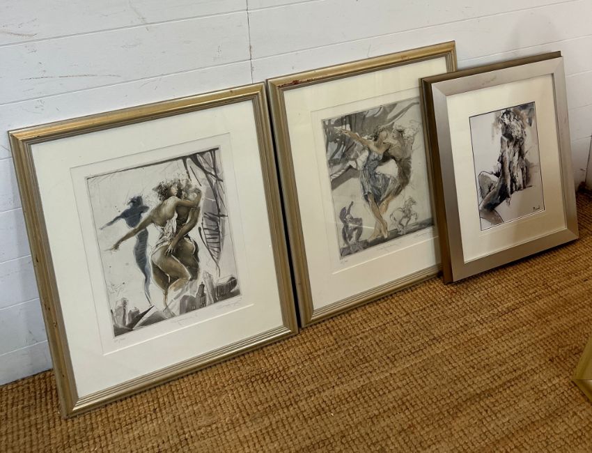 Three prints, two dancing nudes and one nude