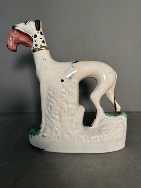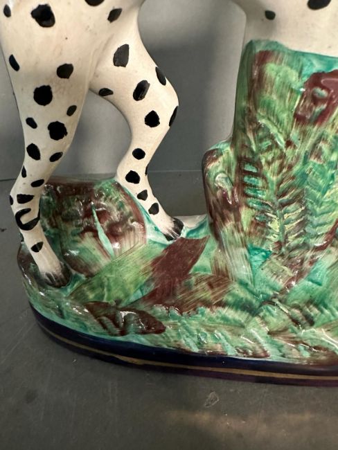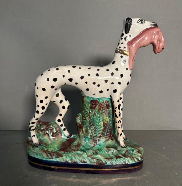 A Staffordshire flatback of a Dalmatian with rabbit