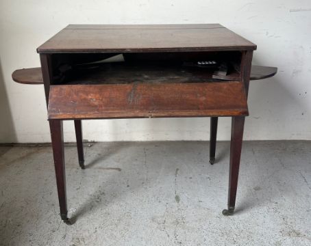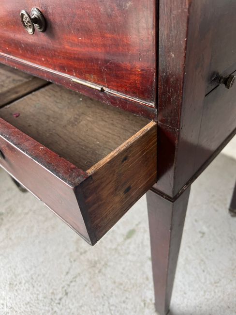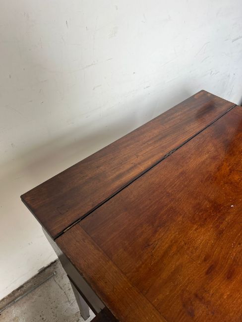 A mahogany desk on tapering legs (H84cm W84cm D62cm)