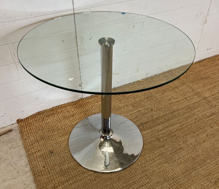 A glass and chrome circular table (H73cm Dia80cm_