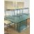 A set of four Clacci Kreaty "Claire" chairs and a large designer glass table