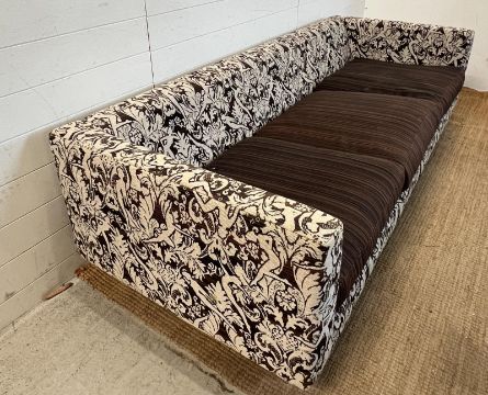 Three seater sofa with pattern fabric and brown cushion seat pads by MOOOI (H60cm W220cm D86cm SH44cm)
