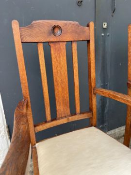 A pair of oak Arts and Crafts style arm chairs with drop in seats Circa 1905