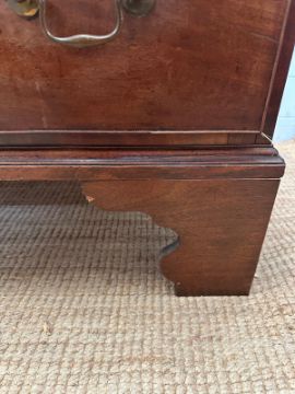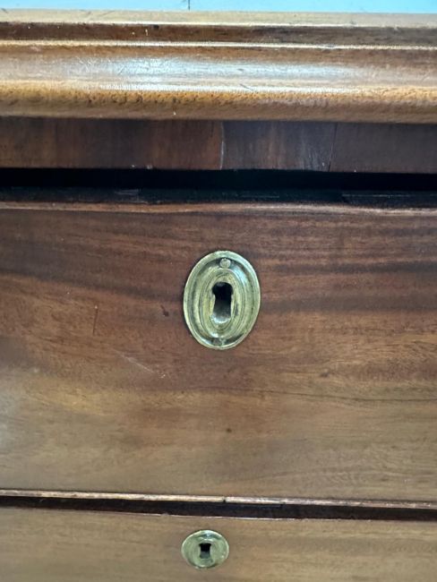 A mahogany George III style chest of drawers comprising of three long drawers with brass back plate and swan neck handles AF (H97cm W117cm D56cm)