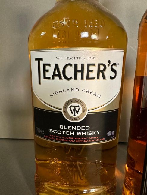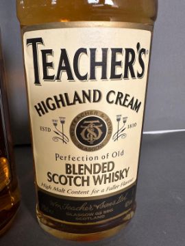 Three bottles of blended Scotch whiskey, two Teachers and a Whyte and Mackary