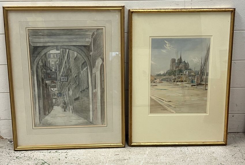 Norte-Dame from the Gast pencil and watercolour signed Charles William Taylor (1878 - 1960) and a pencil drawing singed lower left
