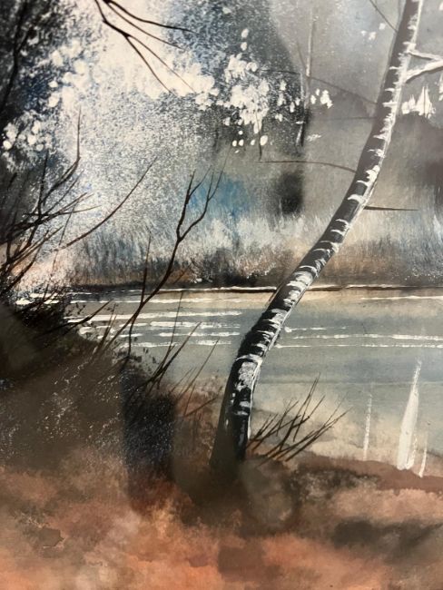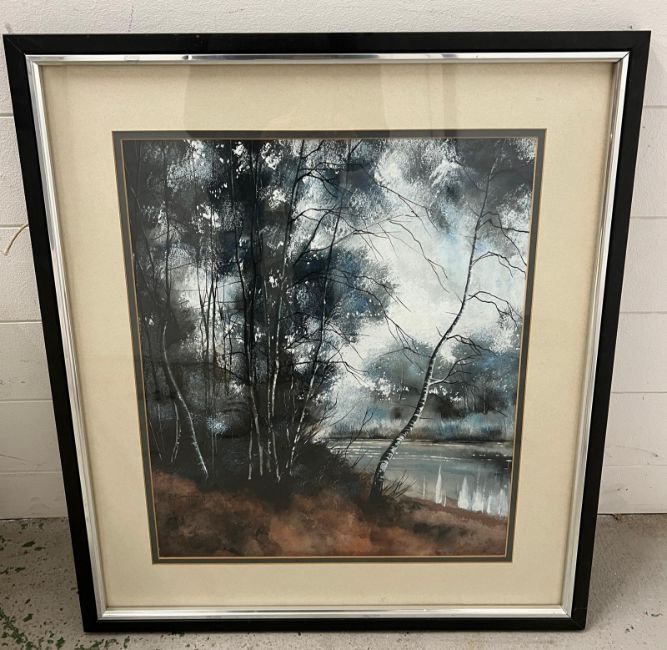 Framed Country landscape, mixed media picture (62x71cm)