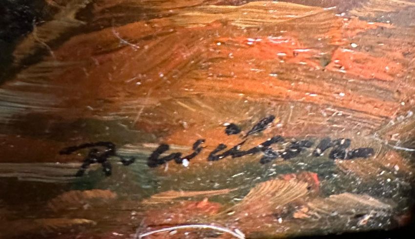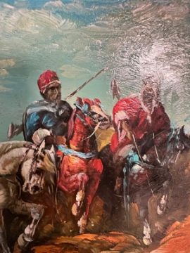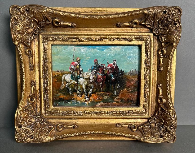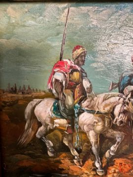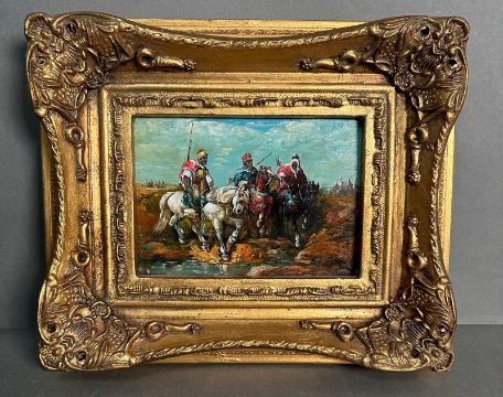 An oil on board of Algeria Bedouins signed R Wilson lower right 30cm x 25cm