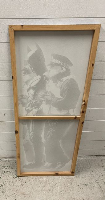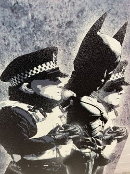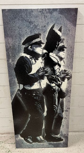 Banksy print of Batman and the police on canvas 53cm x 123cm