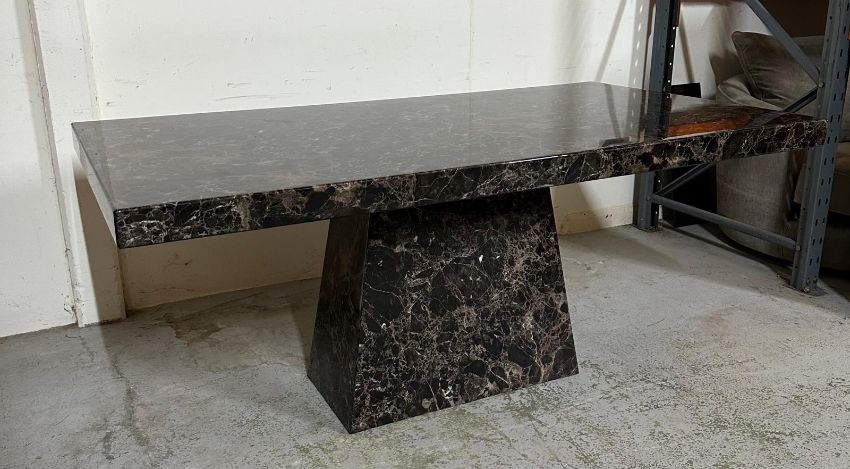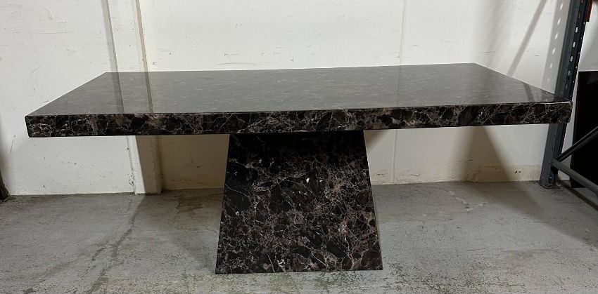 A black marble pedestal dining table (H77cm W180cm D100cm)