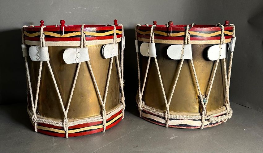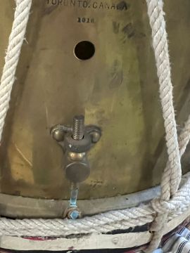 Two brass rope tension snare drum, marked - Whaley Royce & Co. Ltd. Toronto, Canada 1916, 37cm diameter