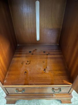 7. When describing lots, finishes are sometimes referred to in the description. These are for guidance only and may not be accurate, e.g. an item may be described as `light oak` when in reality it is in fact `beech`. When mentioning wood finishes, apart from the possibility that the type of wood is incorrectly described, it may also be the case that the item is not solid wood but is veneered, or even that it is not wood at all. Bidders are recommended to examine all lots prior to bidding, to make their own assessments as to the construction and nature of materials and to bid accordingly.