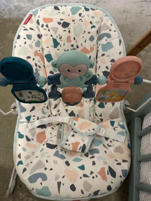 A nursery start up pack to include cot, changing mat, bouncing chairs, high chair and nappy bin