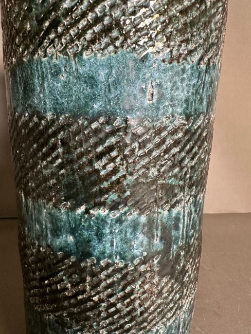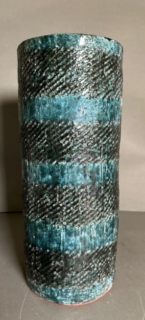 Studio Pottery vase, green grounds and black banding, signed Cobb to base (H37cm)