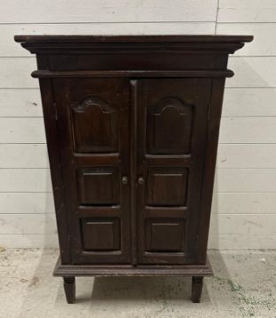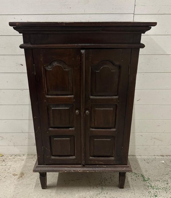 A two door mahogany cabinet on legs (H106cm W68cm D36cm)