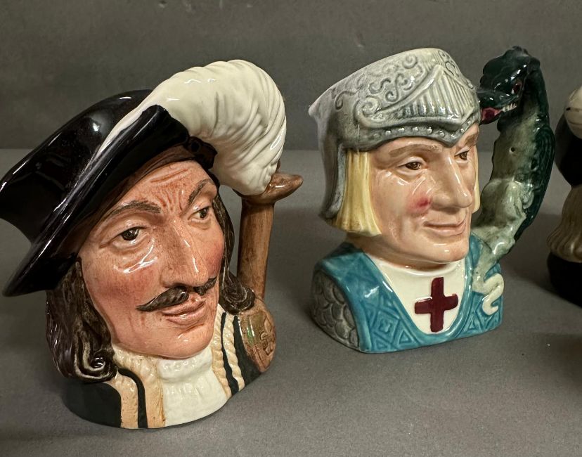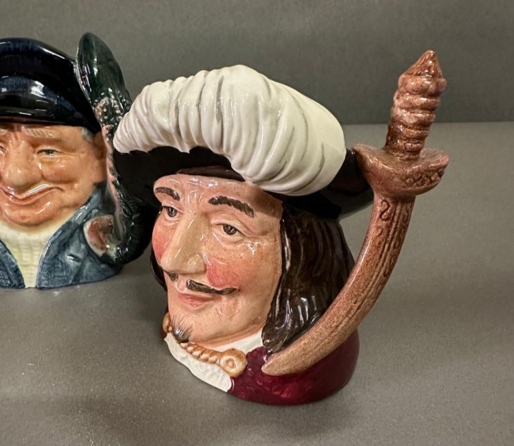 A selection of Royal Doulton character jugs to include Porthos, Lobster man and Athos