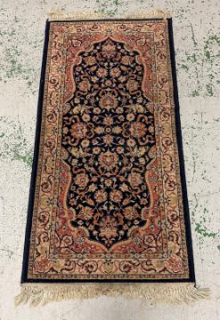 A blue ground rug or prayer matt with floral central shield 150cm x 70cm