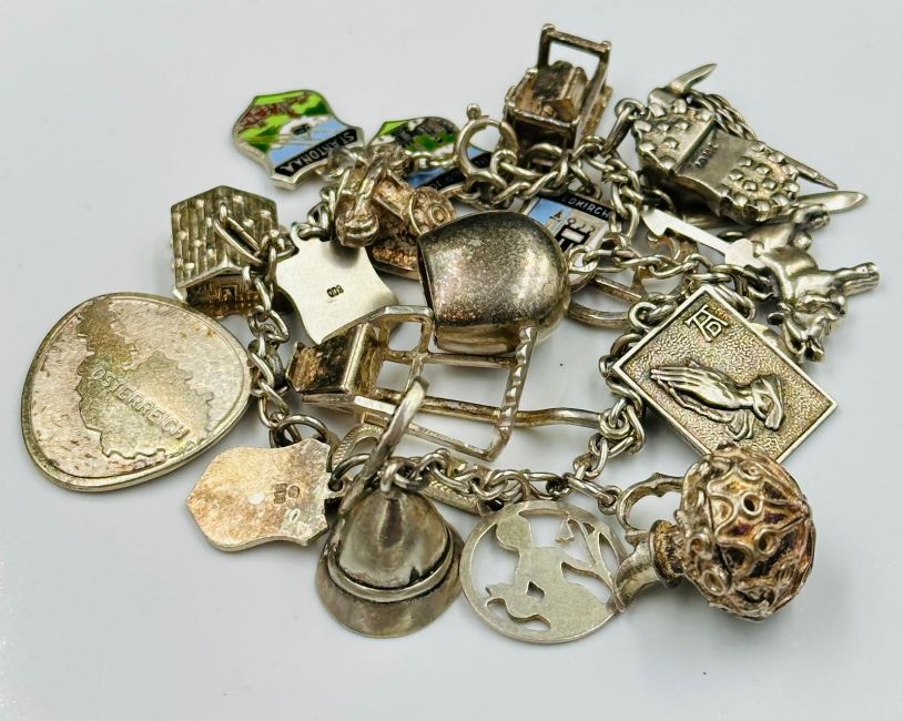 A silver charm bracelet.