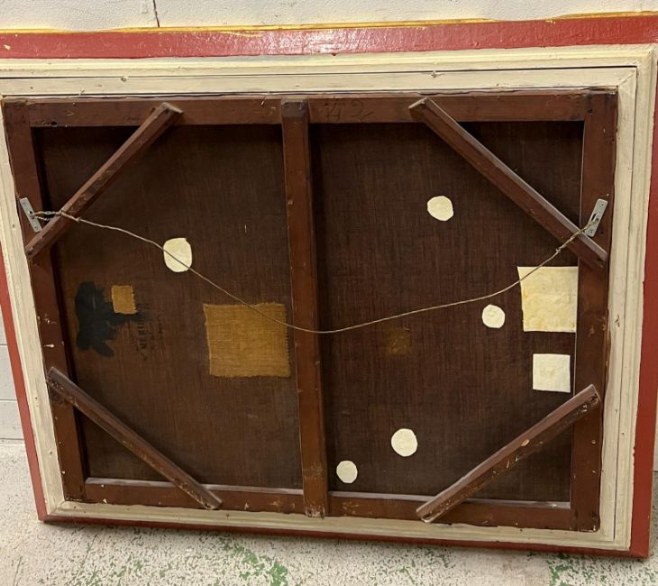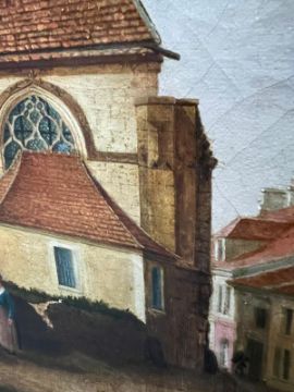 An oil on canvas of a church scene (Frame 100cm x 87cm)