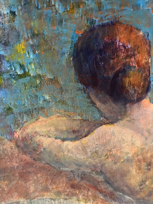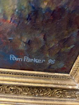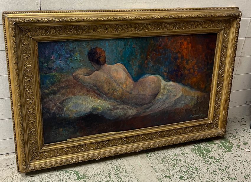A reclining female nude oil on board by Pam Parker 98 (frame 130cm x 80cm)