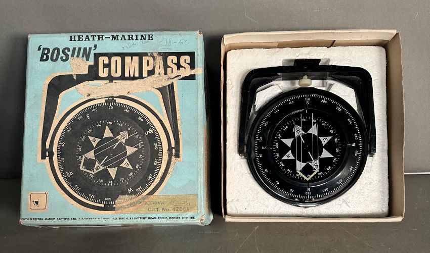 A vintage Heath Marine Bosun compass, boxed