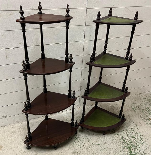 Two four tier corner shelving units (H107cm)