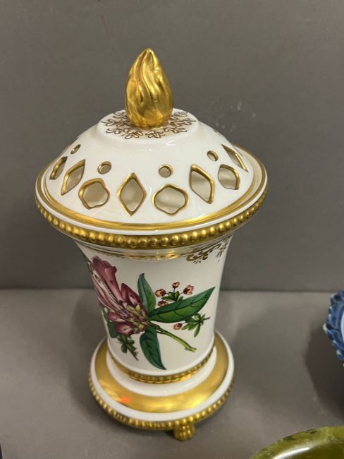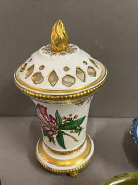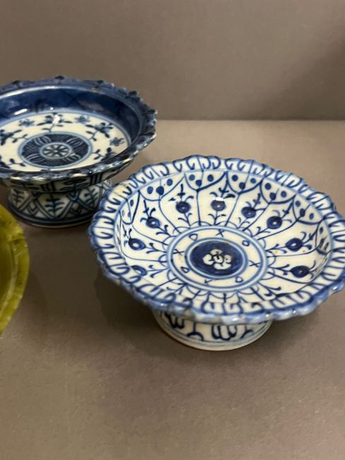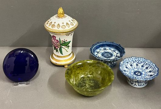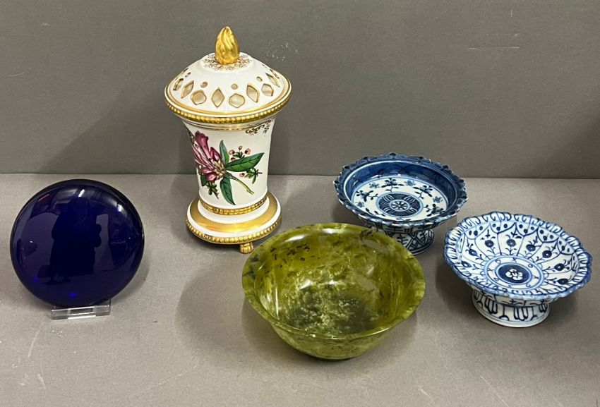 A Spode jar signed cobalt blue pebble and blue and white footed dishes