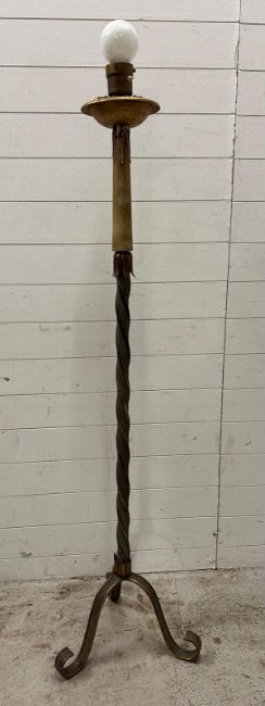 A candle effect floor standing lamp on twisted central column and on splayed legs. Height 166cm