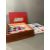 A large wooden Lego themed box, logo to lid, with two trays of vintage Lego inside