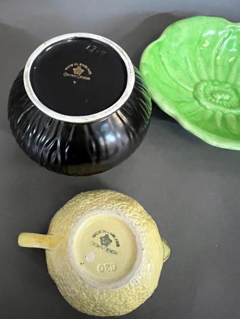 Crown Devon ceramics, including a dish in the form of a leaf