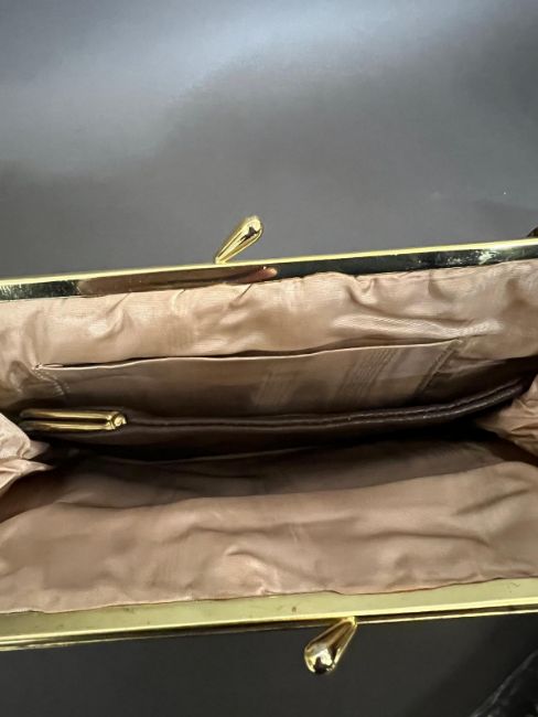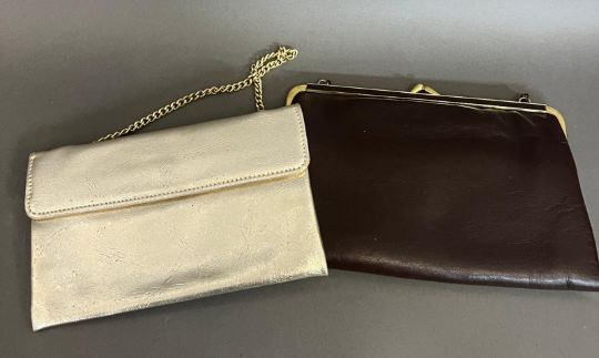 Two vintage clutch purses in gold and brown