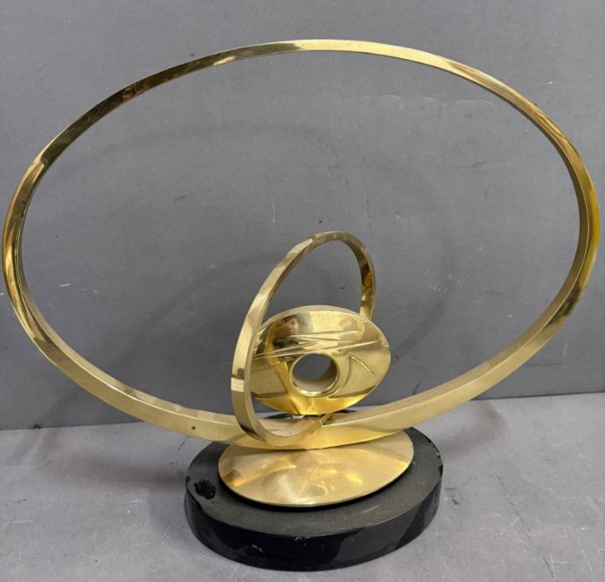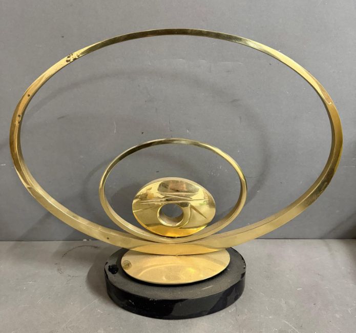 In the manner of Carmello Capelli on abstract brass sculpture on black marble base