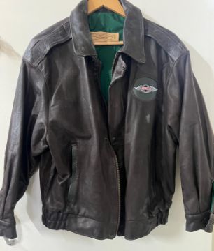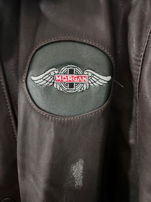 A Morgan leather flying jacket by The Cockpit Clothing Co, Southampton with a brass official plate JKT NO 007B