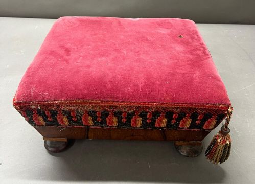 Victorian footstool with velvet top (H17cm x L36cm x D32cm)