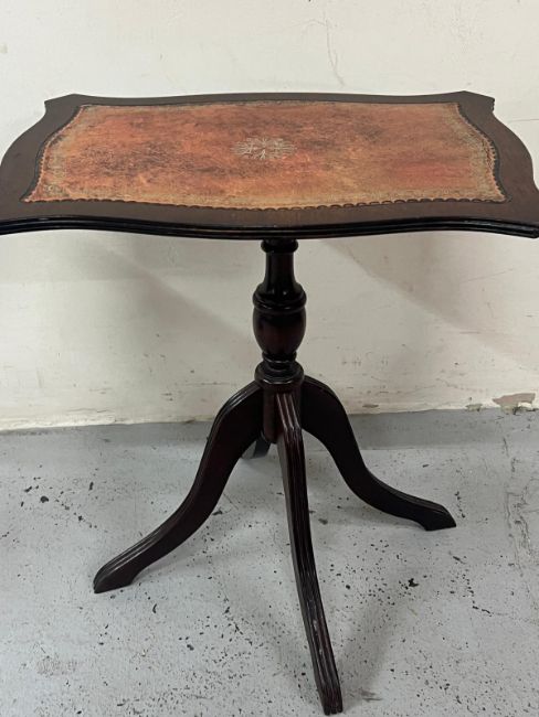 Mahogany side table with leather top (H53cm x 35cm x 48cm)