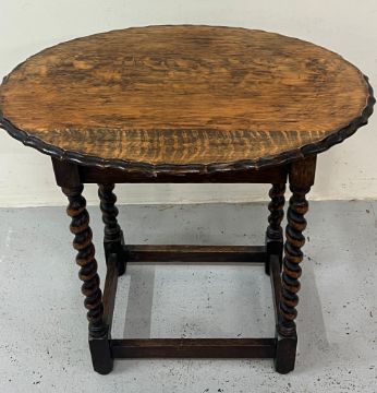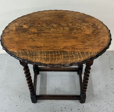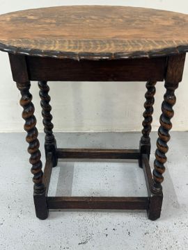 Oak side table with scalloped edge and barley twist legs (H57cm x 43cm x 60cm)