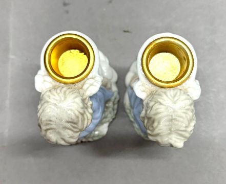 A pair of porcelain cherub candlestick holders