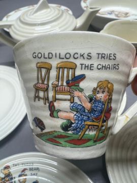 Vintage English childs part tea set featuring Goldilocks and Three bears