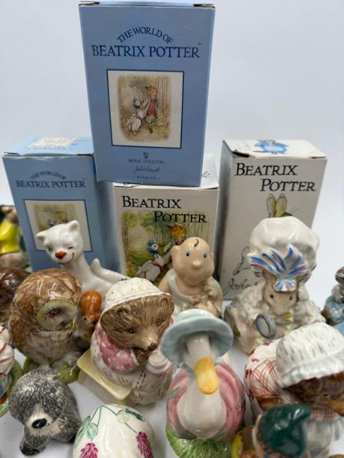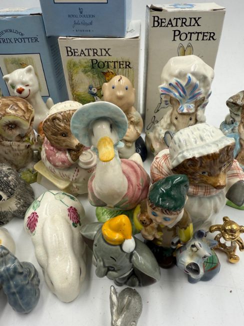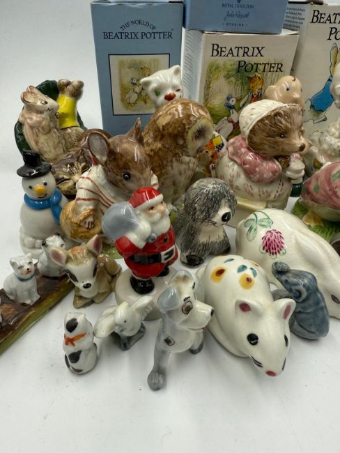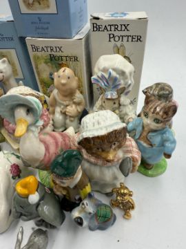 A selection of boxed and unboxed ceramic figures to include Beatrix Potter by Royal Doulton and Beswick